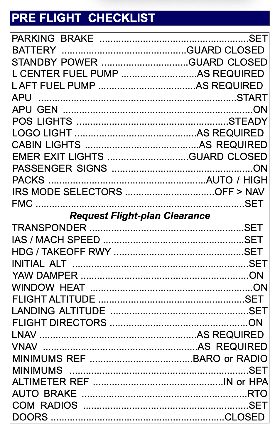 Давайте посмотрим на следующий предполётный чек-лист Boeing.