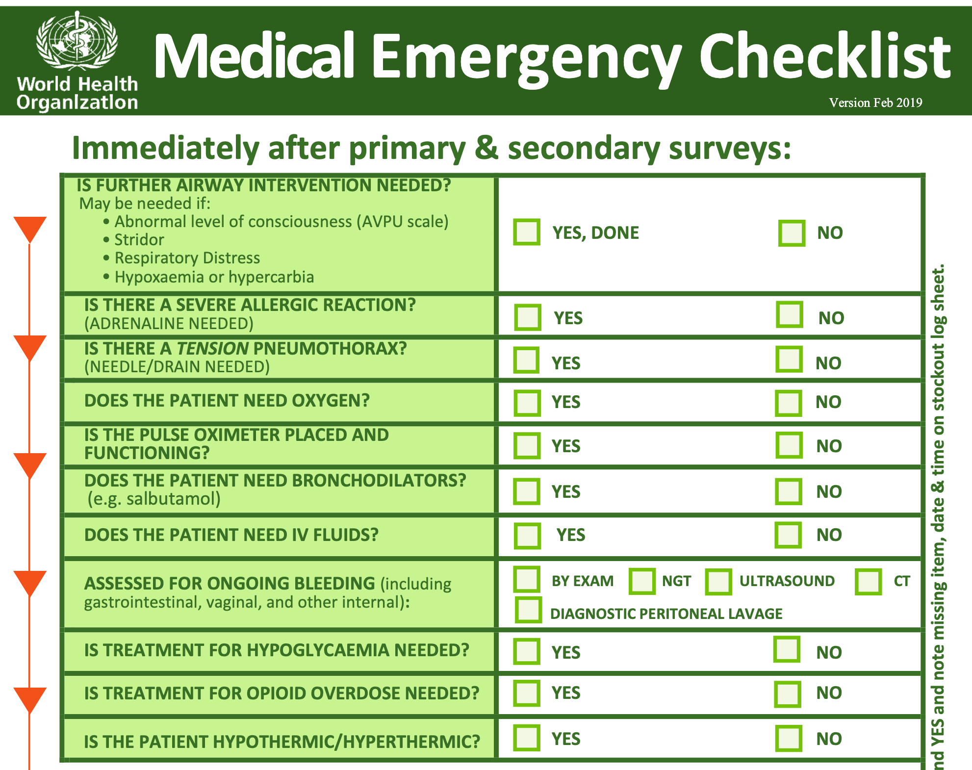 То же самое касается экстренной медицинской помощи. Вот пример медицинского чек-листа, созданного Всемирной организацией здравоохранения: