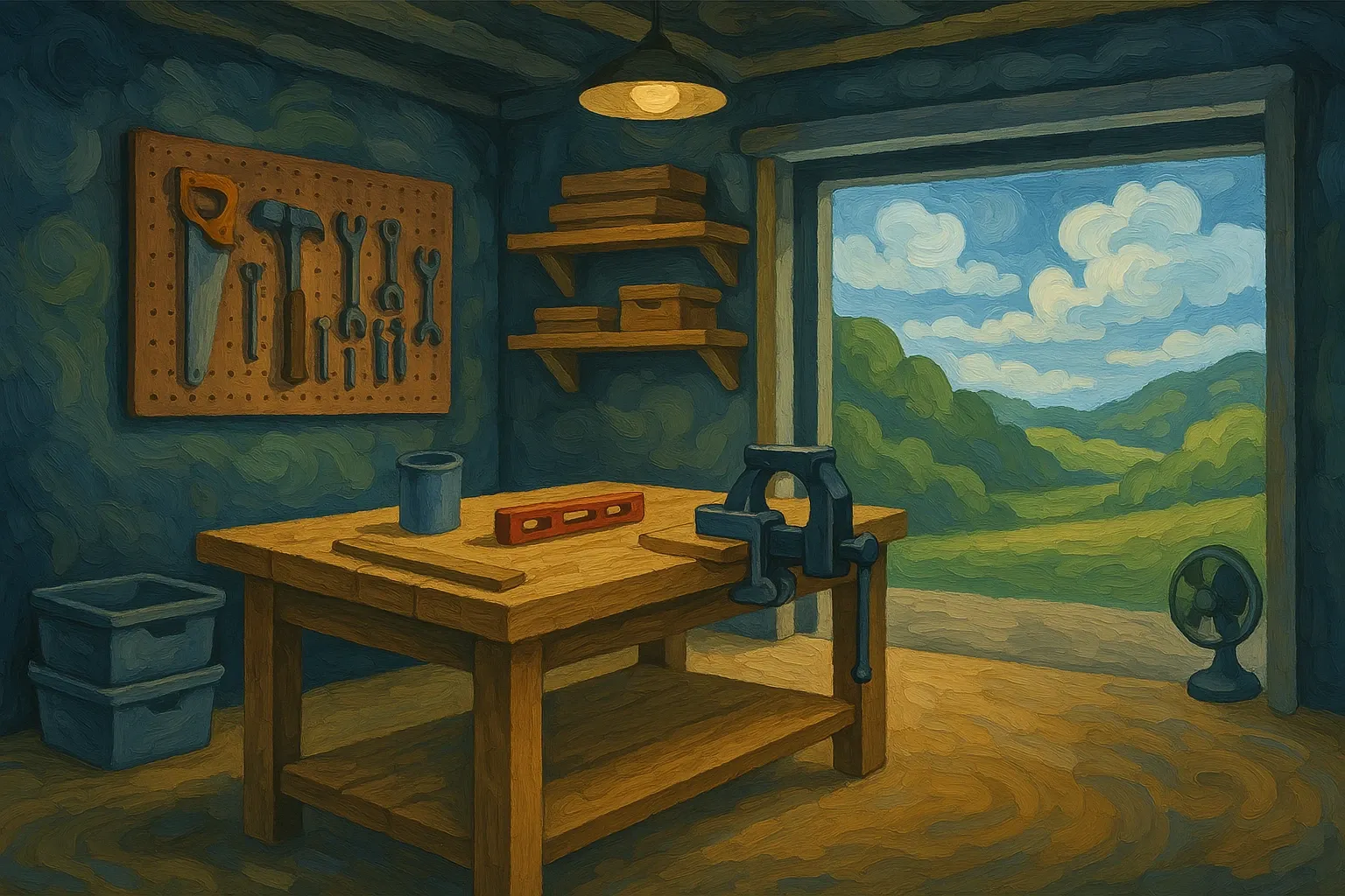 Даже если у тебя есть только уголок в гараже или сарай во дворе, можно создать функциональное и безопасное место для работы. Оно не должно быть идеальным — главное, чтобы оно подходило тебе.