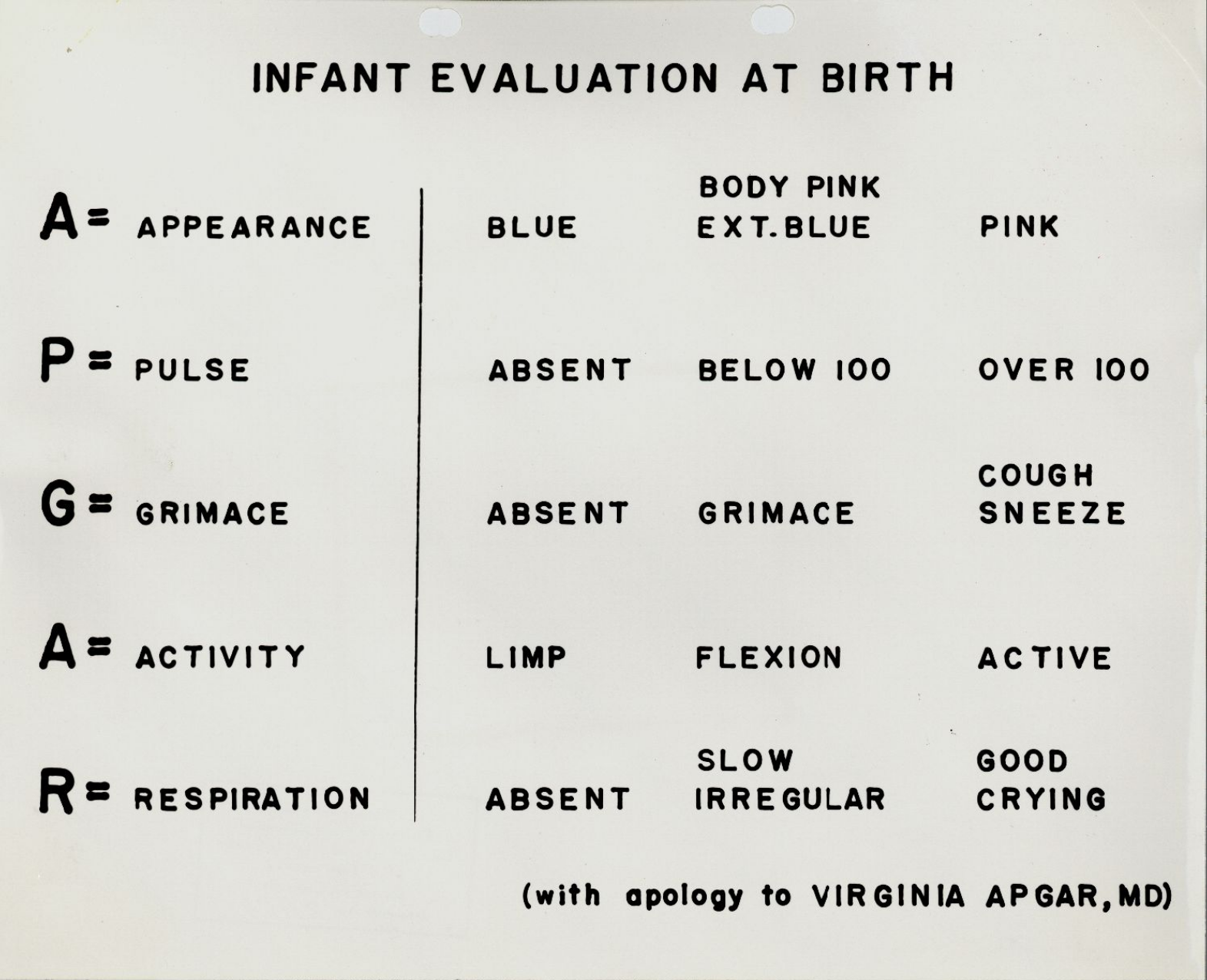 [7] Virginia Apgar, A Proposal for a New Method of Evaluation of the Newborn Infant