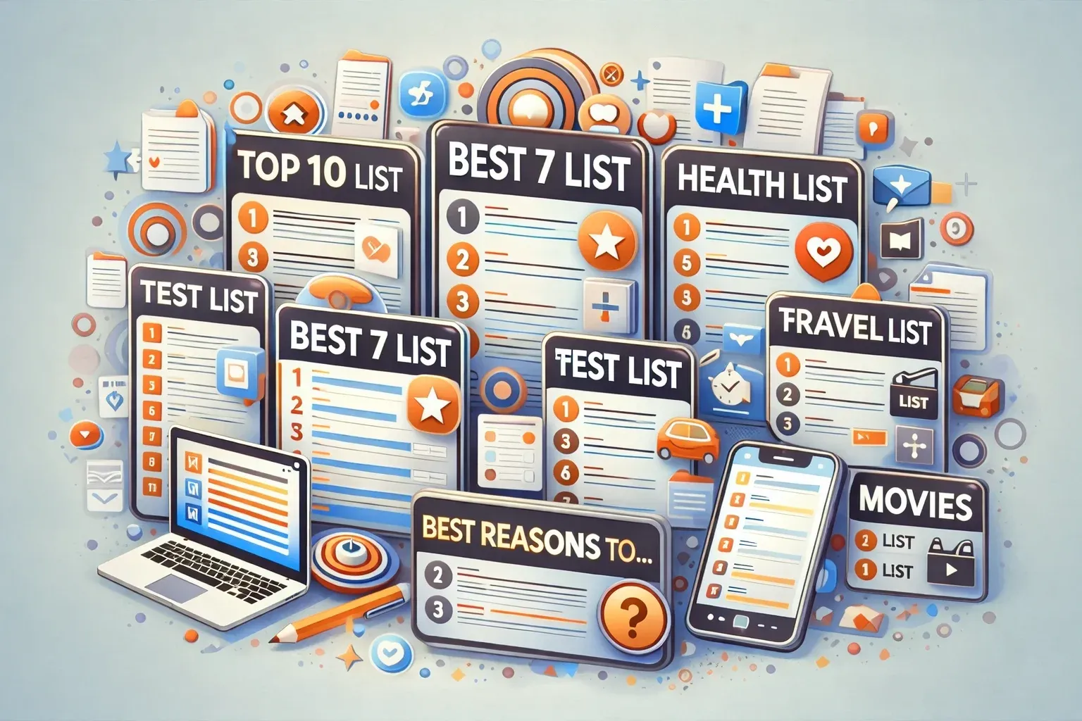Этот тип статей основан на ненумерованном списке, потому порядок каждого пункта не слишком важен. Например, текст «10 правил жизни Винни-Пуха» или «5 принципов хорошего винегрета» не требует строгого порядка этих правил.