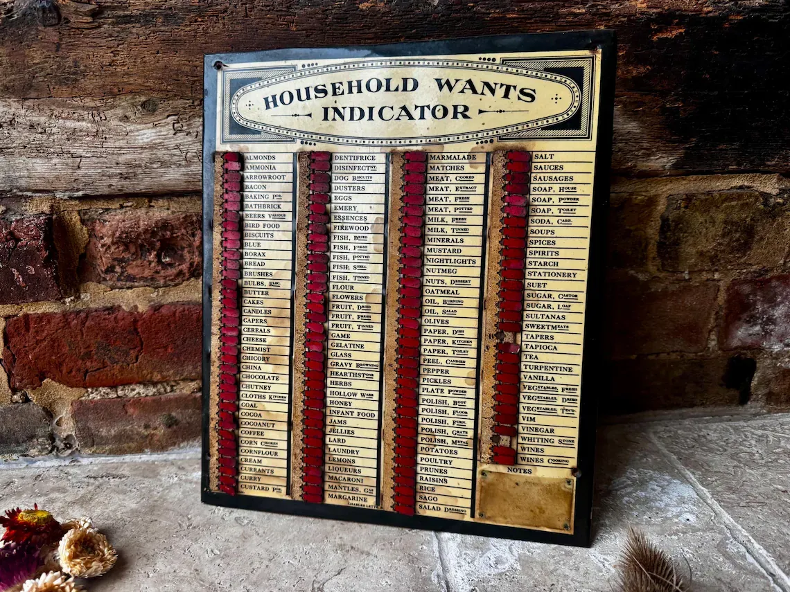 [2] Изображение со страницы Antique 1920s Charles Letts Household Wants Indicator Rare Four Row Version Vintage Metal Tabbed Kitchen Shopping Indicator с сайта Etsy